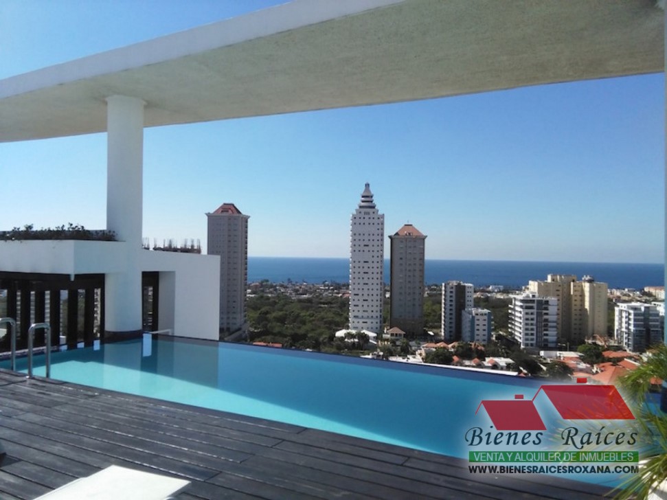 Áreas sociales tipo: casa-club en el rooftop de la torre: piscina infinity, terraza con área de BBQ, gym, 2 salones multiusos, sala de cine, playground entre otros.